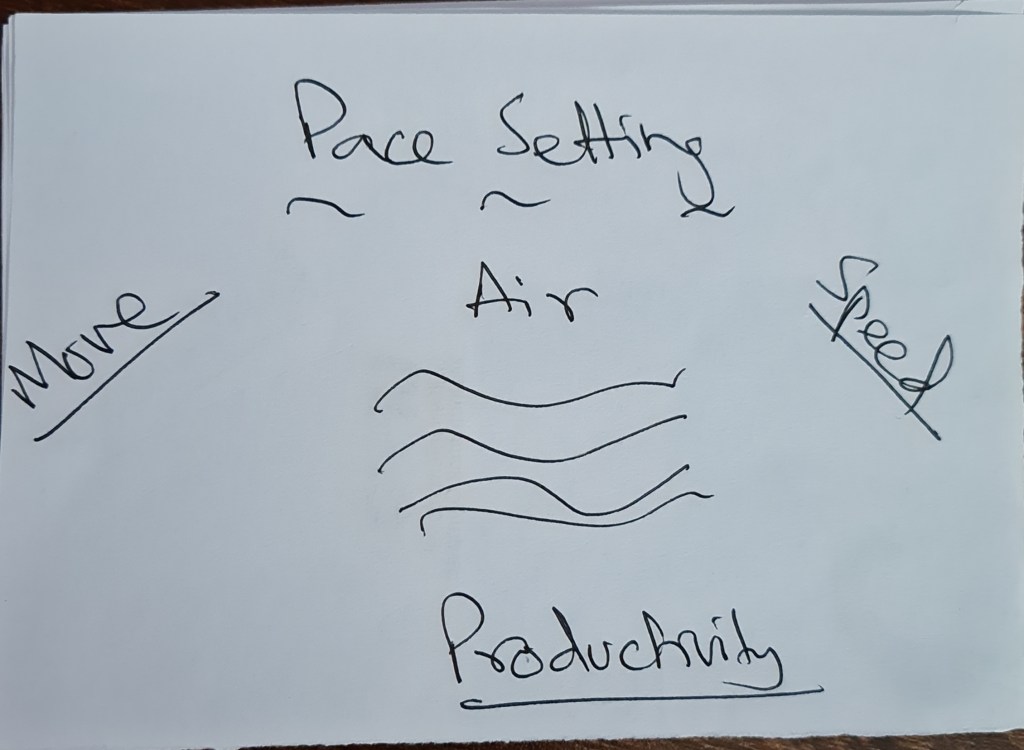 I asked, “Understood, But I want to find leadership in me. How can I find”. Air said, “come with me.” I continued running at her speed. “You just do it. Keep moving. Be the example you want others to become. Be the role model. Don’t talk; just do it. Set the Pace for your team.” Her speed increased, and I found it challenging to maintain Pace and then I tripped over a bush and fell on the ground.